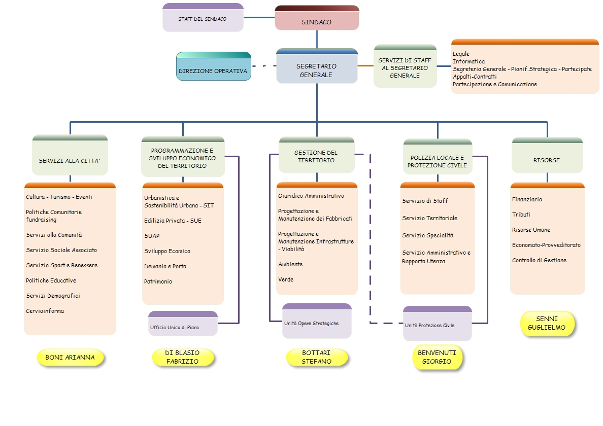 La struttura organizzativa è suddivisa in aree di competenze che gestiscono i servizi erogati alla comunità.